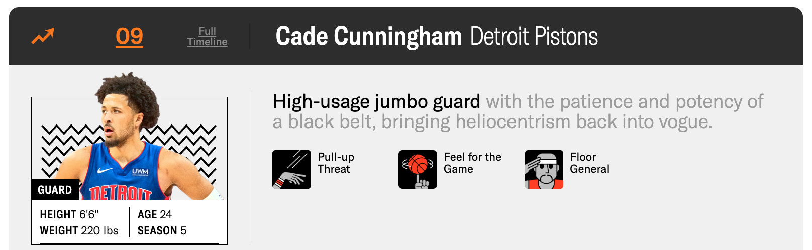 Returning to the similarity index, Cade is playing like late-Pelicans era Jrue Holiday, who averaged 20 points, 8 rebounds, and 5 assists per game and made Second-Team All Defense.