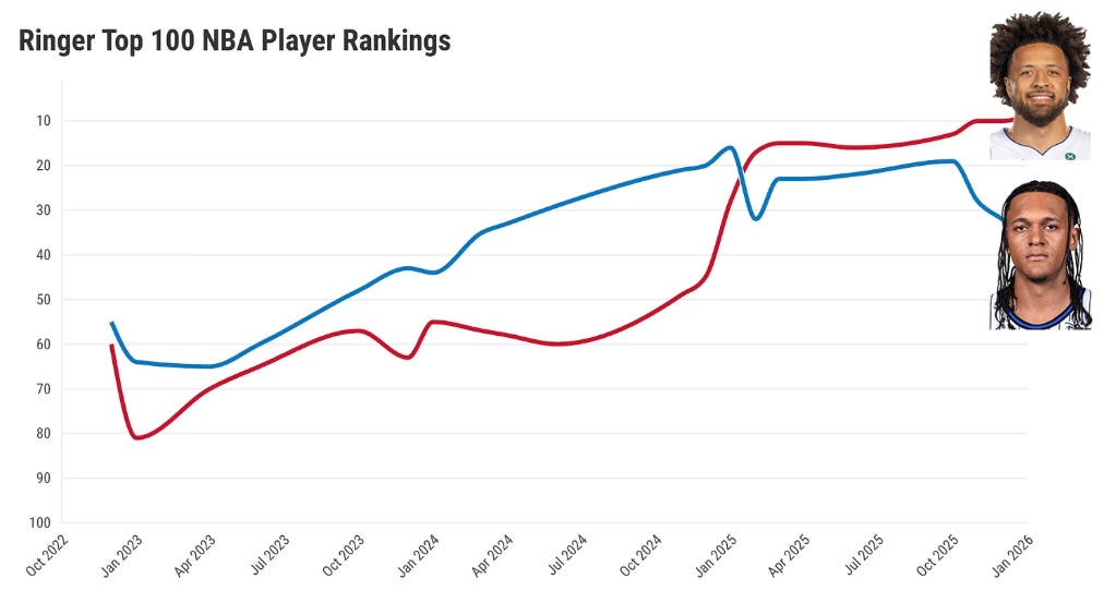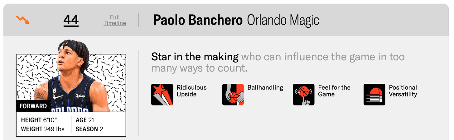 ESPN had Paolo third on their list of 25 players under 25, while Cade was 13th. That has exactly flipped in the most recent iteration.