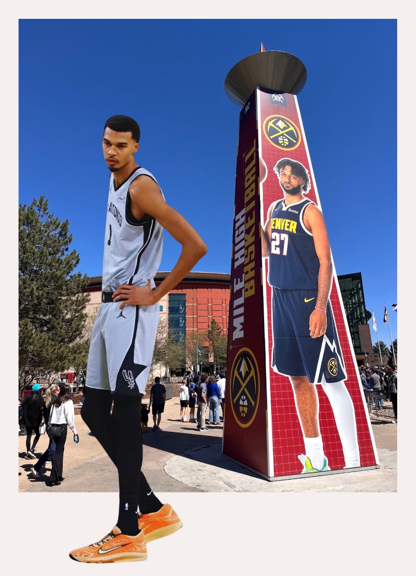 If I could have taken some other, unreasonable souvenirs, they’d be Wemby’s size 21 bright orange shoes and the 50-foot tall triangular poster of Jamal Murray.