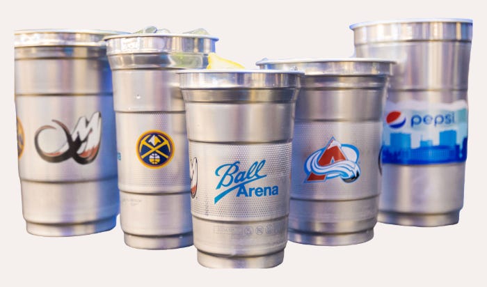 I actually had a chance to get some memorabilia from this game, but distracted by the high I was on after the Nuggets win, I walked out of the stadium with nothing but these reusable aluminum cups emblazoned with Ball Arena on them.8 Oh, and memories I’ll cherish for a lifetime I suppose.